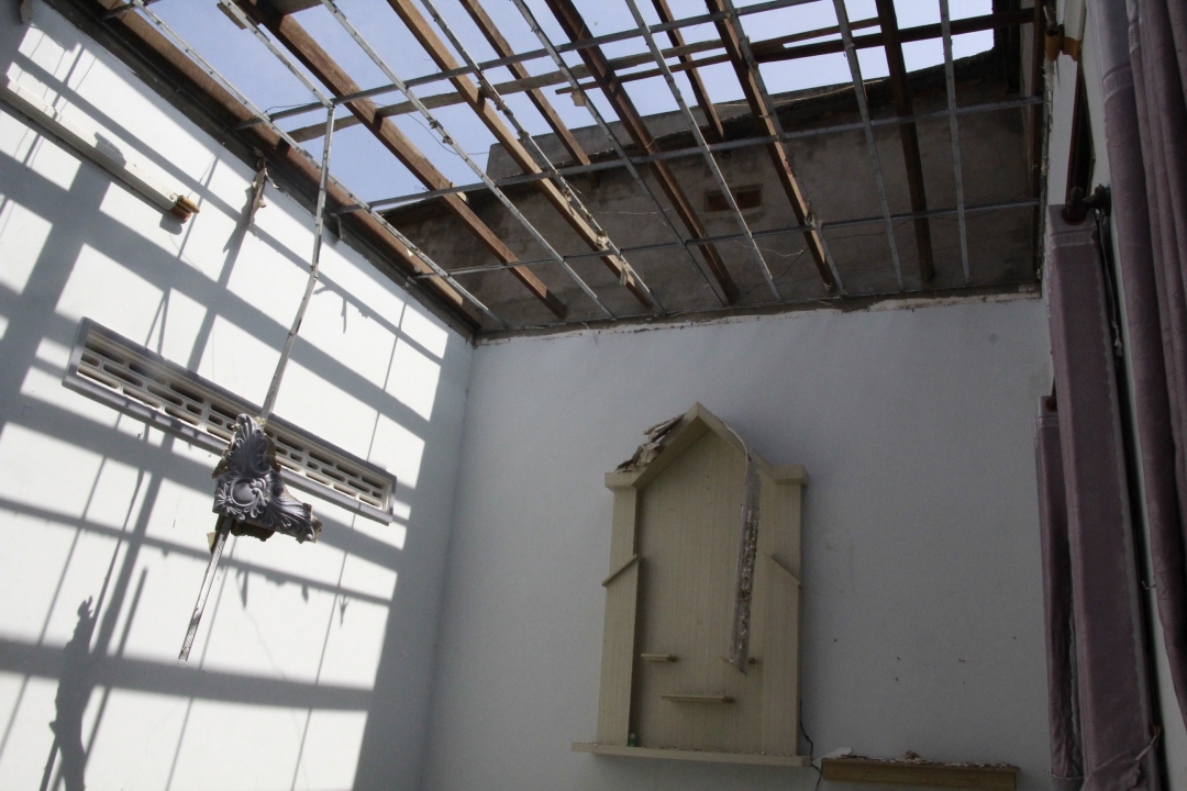| Nhà dân ở xã Cư Êbur bị tốc mái do giông lốc |
