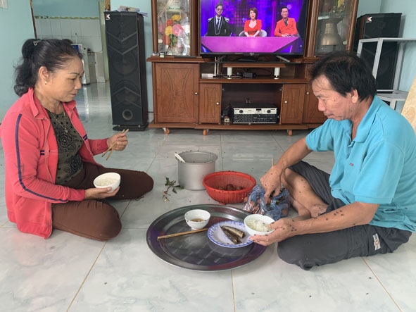 | Cán bộ xã Ea Siên kiểm tra việc chấp hành các quy định tại trang trại chăn nuôi heo của gia đình ông Nông Văn Pòn. |