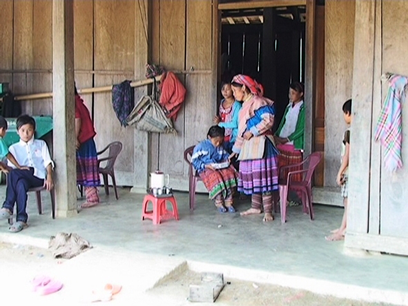 Cách nhà Sự không xa là cặp vợ chồng Tráng Seo Lềnh và Thào Thị Vương. Tráng Seo Lềnh 17 tuổi, Thào Thị Vương đến nay mới bước sang tuổi 15 - lứa tuổi đáng ra còn cắp sách đến trường với biết bao hoài bão và dự định cho tương lai. Nhưng giờ đây cặp vợ chồng “trẻ con” này đã có 1 con trai được 9 tháng tuổi. Do không biết cách chăm sóc nên đứa con bị bệnh viêm phế quản. Lềnh suốt ngày đi đá bóng, bẫy chim hoặc vào rừng lấy mật ong, Vương chẳng biết làm gì ngoài việc địu con đi chơi cùng với những đứa trẻ trong xóm. Vương tâm sự: “Do chưa có kinh nghiệm nuôi con nên mọi việc đều nhờ mẹ chồng chăm sóc. Sức khỏe yếu, chưa thạo nhiều công việc nên em chỉ ở nhà. Chủ yếu chăm con, nấu cơm”.