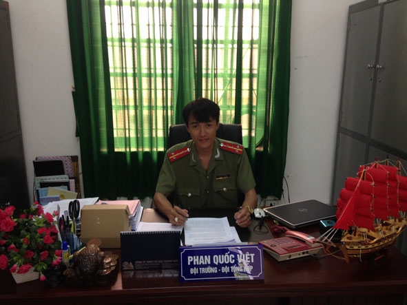Công tác tham mưu tổng hợp đòi hỏi phải có tính thận trọng, tỉ mỉ, kiên trì và làm việc không kể thời gian. Nhận thức rõ tầm quan trọng và tính chất của công việc, Đại úy Phan Quốc Việt không ngừng nỗ lực, cố gắng học hỏi từ đồng nghiệp, chịu khó nghiên cứu tài liệu, văn bản và rút kinh nghiệm từ thực tiễn để hoàn thành tốt các nhiệm vụ được giao. Có những ngày anh phải nghiên cứu hàng chục văn bản để tham mưu cho lãnh đạo Công an huyện ban hành; triển khai có hiệu quả các kế hoạch công tác cũng như sơ kết, tổng kết các chuyên đề công tác nghiệp vụ, phục vụ tốt nhất cho công tác lãnh đạo, chỉ đạo công tác nghiệp vụ của đơn vị. Đồng thời anh làm tốt chức năng tham mưu cho cấp ủy, chính quyền địa phương ban hành các văn bản chỉ đạo các cơ quan, ban, ngành, đoàn thể trên địa bàn thực hiện, góp phần vào việc bảo đảm tốt an ninh, trật tự trên địa bàn.