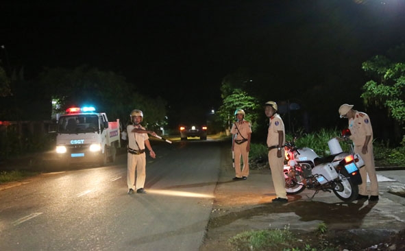 | Lực lượng CSGT (Công an huyện Lắk) kiểm tra phương tiện thủy chở khách khu vực Hồ Lắk. |