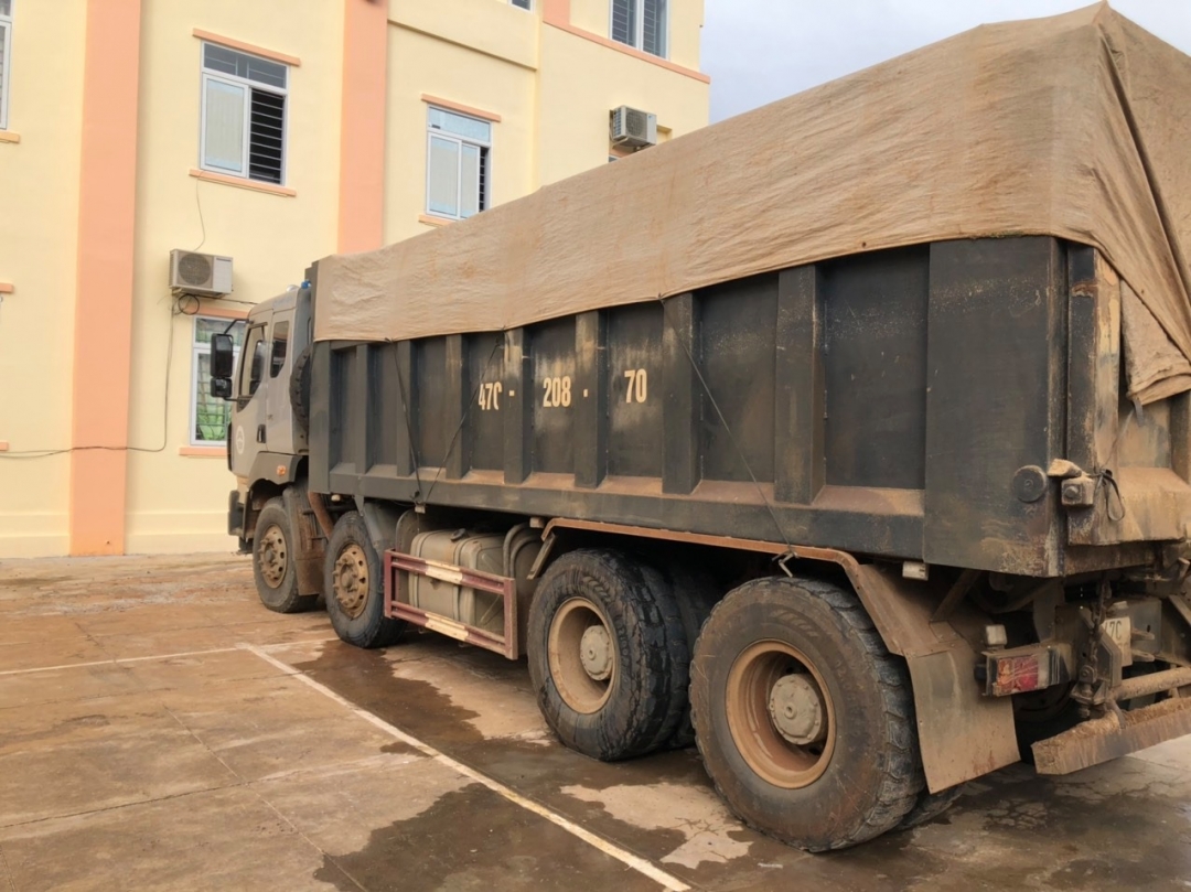 xe tải chở vật liệu xây dựng quá tải trọng cho phép trên 150%.