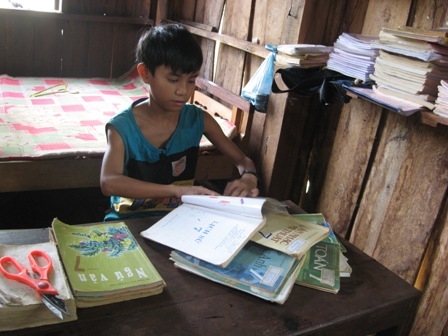| Những lúc rảnh việc nhà, Bông thường tranh thủ ngồi học bài. |