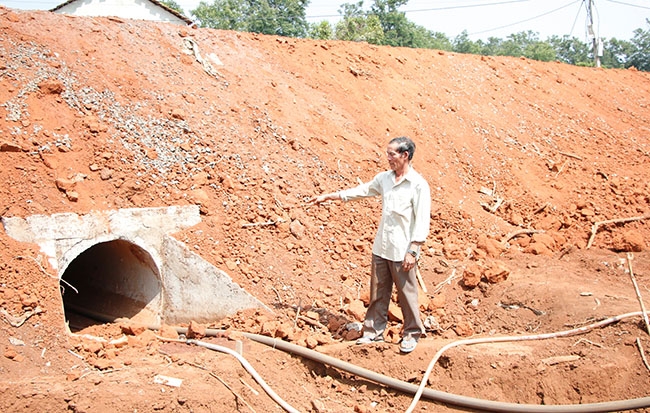Gia đình ông Phùng Kim Hiến, trú tại đường Phùng Thị Chính, phường Thống Nhất (thị xã Buôn Hồ) cũng có rẫy ở khu vực này. Quy hoạch đường đã thu hồi một phần diện tích đất cắt ngang rẫy cà phê của ông. Khi xây dựng đường đã khiến một bên rẫy nhà ông không thoát được nước, phần tiếp giáp với đường thì nước mưa ứ đọng gây ngập úng cây trồng, còn một bên rẫy thì nước, đất, đá từ trên đường chảy xuống làm xói mòn, lấp gốc cà phê, tiêu. Trời mưa, hai vợ chồng ông phải đào rãnh thoát nước ngay trên rẫy nhà mình để cứu cây trồng nhưng không xuể.