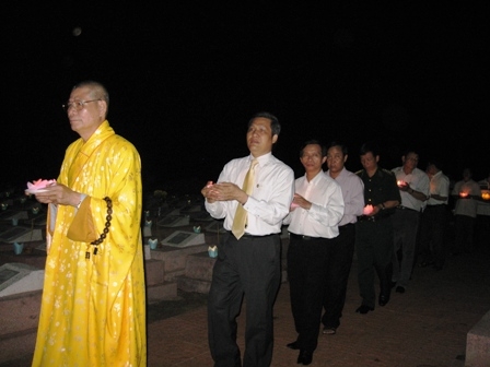 Trong chuỗi các hoạt động Đại lễ cầu siêu anh linh các anh hùng liệt sĩ, đêm 23-7, tại Nghĩa trang Liệt sĩ tỉnh, Chùa Sắc tứ Khải Đoan tổ chức Lễ thắp nến tri ân các anh hùng liệt sĩ.