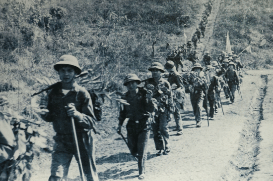| Bộ đội hành quân trên đường Trường Sơn thời kỳ chống Mỹ. Ảnh tư liệu |