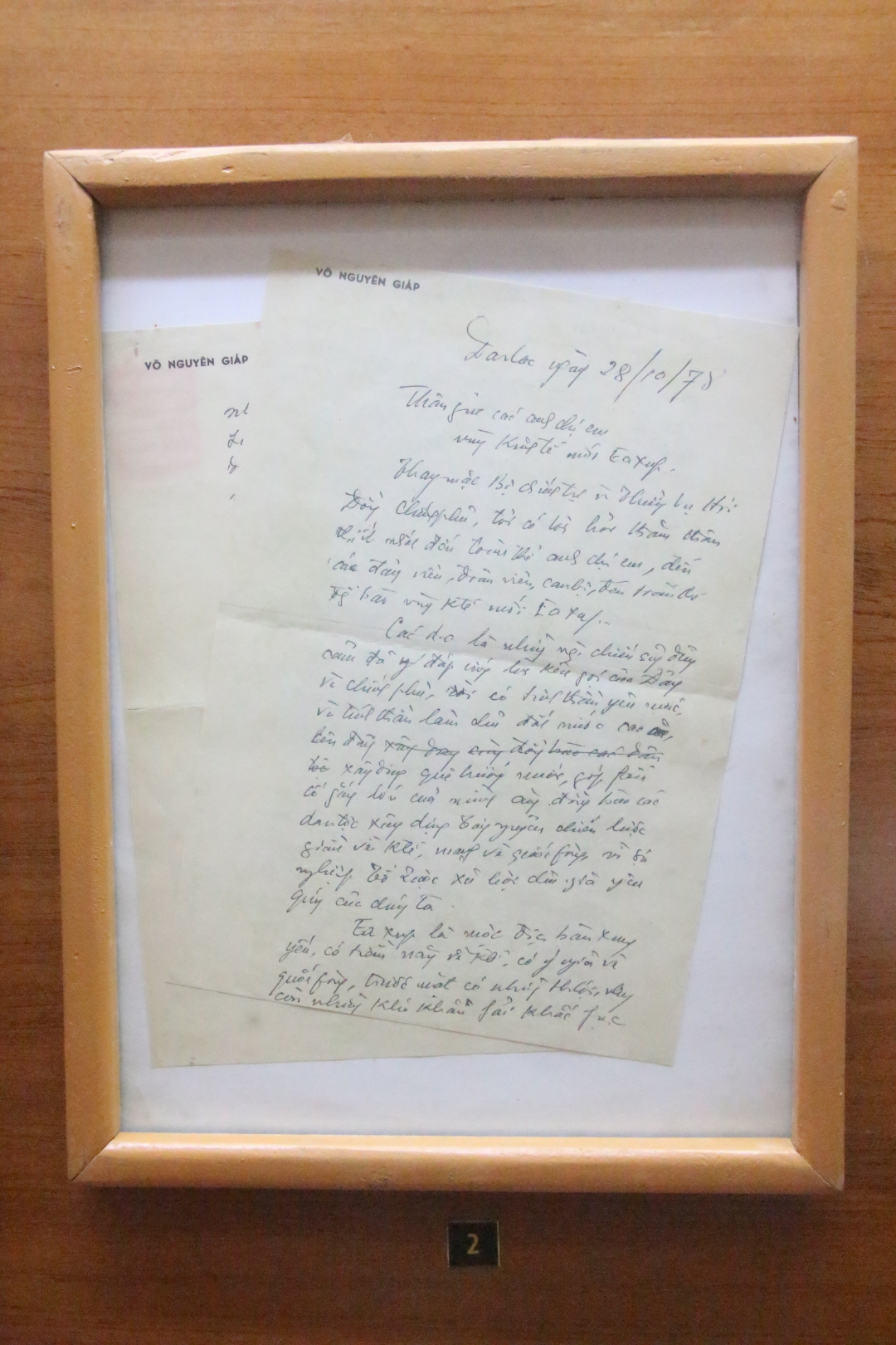 | Bức thư của Đại tướng Võ Nguyên Giáp. Ảnh: T.Dung |