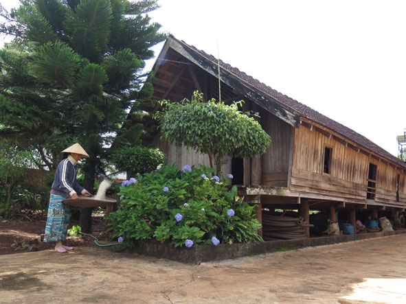 | Những ngôi nhà dài truyền thống ở buôn Akô Dhông (phường Tân Lợi, TP. Buôn Ma Thuột) được bảo tồn gìn giữ là điểm đến tham quan của du khách. |