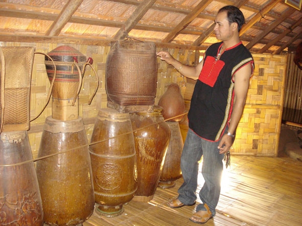 | Mỗi năm thu được 5 - 6 tấn cà phê nhân, Y Thim bán đi dùng hơn một nửa tiền để mua các loại đồ cổ. Có khi vợ chồng ông bỏ ra vài tạ cà phê chỉ để đổi lấy một chiếc ché, hoặc chiếc ghế kpan, chiếc trống cổ mà người ta không dùng nữa... |