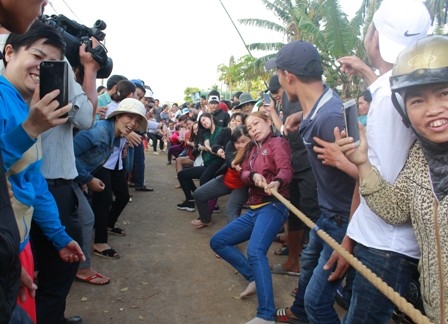 | Nhiều chị em hứng thú với trò chơi dân gian kéo co |