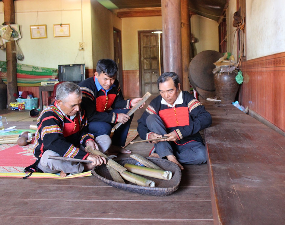 | Già Y Bhưt kể chuyện làm nhà dài. |