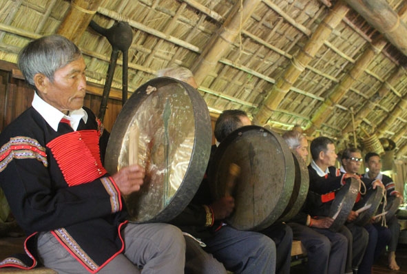 | Biểu diễn cồng chiêng được Khu du lịch sinh thái Akô Ea (buôn Akô Dhông) khai thác phục vụ du khách. |