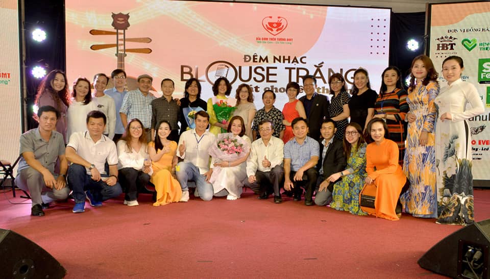 | Khán giả chụp hình lưu niệm với các ca sĩ trong Đêm nhạc Blouse Trắng – Hát cho yêu thương lần thứ 30 tại TP. Buôn Ma Thuột. |