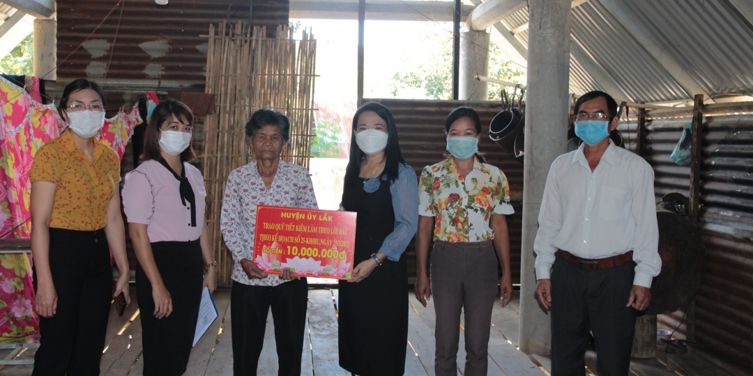 | Phó Bí thư Tỉnh ủy, Chủ tịch UBND tỉnh Phạm Ngọc Nghị thăm hỏi sức khỏe, tặng quà Mẹ Việt Nam Anh hùng H'Năr Ông (SN 1925) ở buôn Pai Ar, xã Đắk Phơi, huyện Lắk). Ảnh: Duy Tiến |