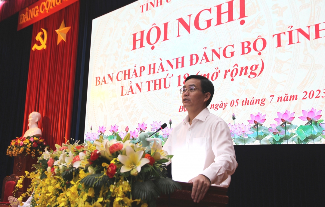 | Tỉnh ủy viên, Chánh Thanh tra tỉnh Nguyễn Minh Huấn phát biểu tại Lễ ký kết chương trình phối hợp. |