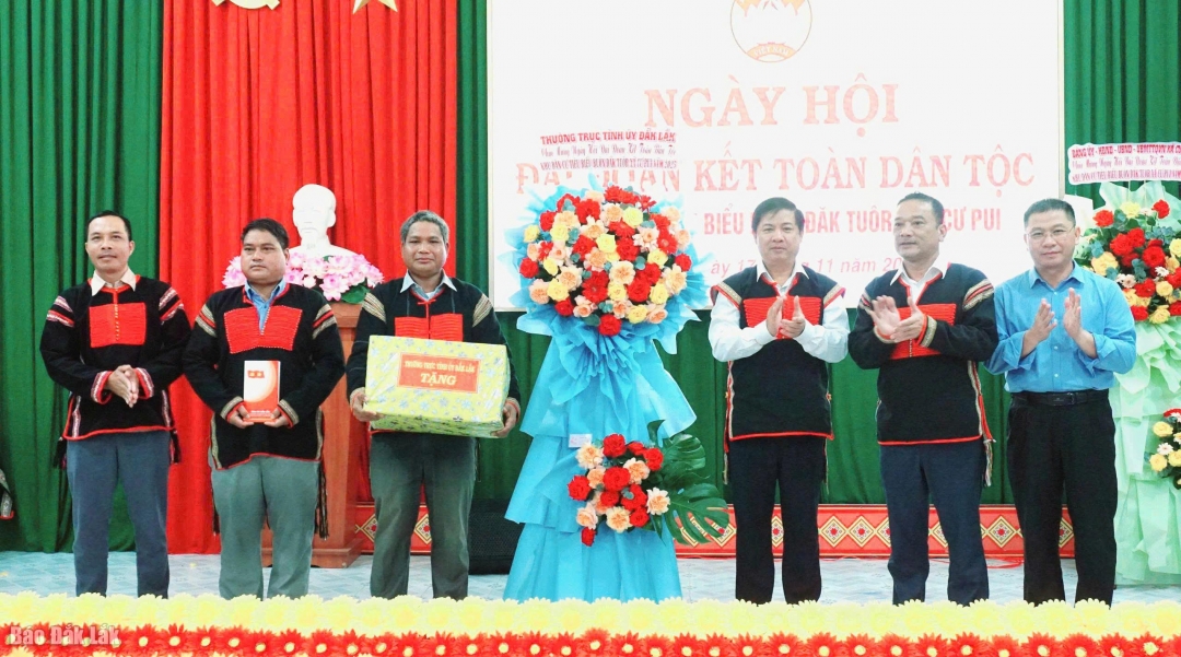 Tham dự Ngày hội Đại đoàn kết với người dân buôn Đăk Tuôr có các đồng chí: Lương Nguyễn Minh Triết, Ủy viên dự khuyết Ban Chấp hành Trung ương Đảng, Bí thư Tỉnh ủy; Y Giang Gry Niê Knơng, Phó Bí thư Tỉnh ủy, Chủ tịch Ủy ban MTTQ Việt Nam tỉnh; Trần Trung Hiển, Ủy viên Ban Thường vụ, Chủ nhiệm Ủy ban Kiểm tra Tỉnh ủy; Bí thư Đảng ủy, Chủ tịch HĐND xã Cư Pui Lê Văn Long; các đồng chí là lãnh đạo Đảng ủy, HĐND, UBND, Ủy ban MTTQ Việt Nam xã Cư Pui.