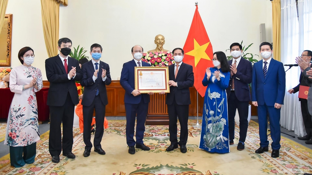 | Cụ Phạm Khắc Hòe (người đi sau Bác Hồ) trong một chuyến đi Pháp. Ảnh tư liệu |