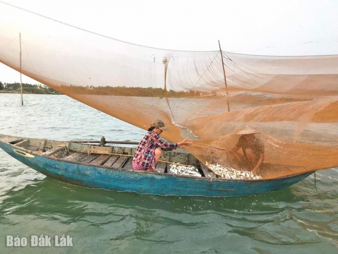 | Đánh cá trên sông Thu Bồn. |