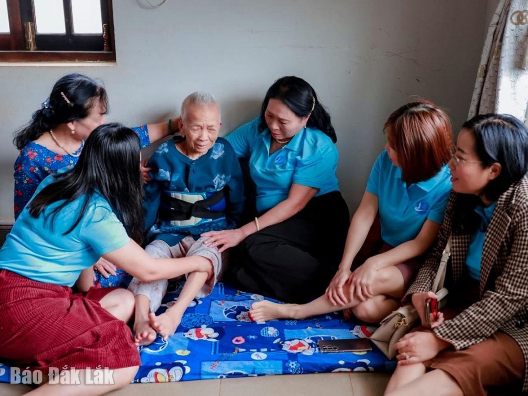 | Hội Nữ doanh nhân tỉnh thăm Mẹ Việt Nam Anh hùng Tô Thị Chiểu (phường Tân Lập). |