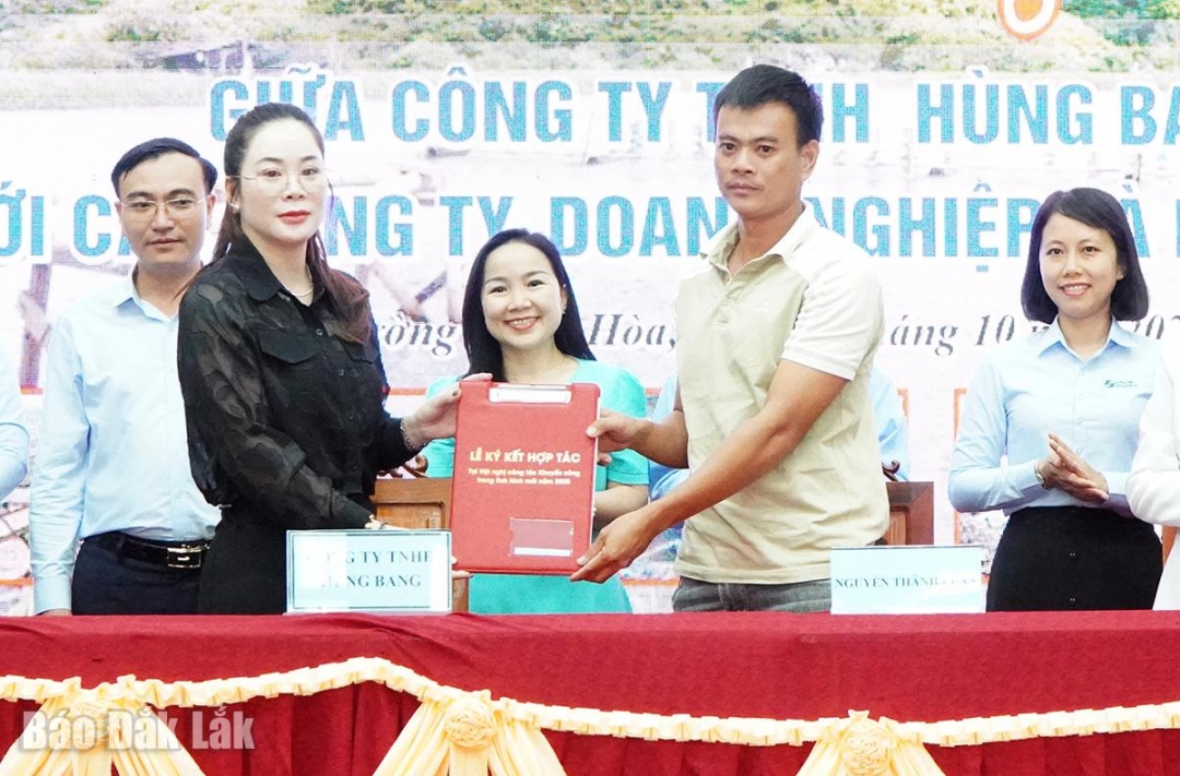 Nhiều nông dân, hợp tác xã ký kết hợp tác cung cấp cá rô phi thương phẩm cho Công ty TNHH Hùng Bang. |
