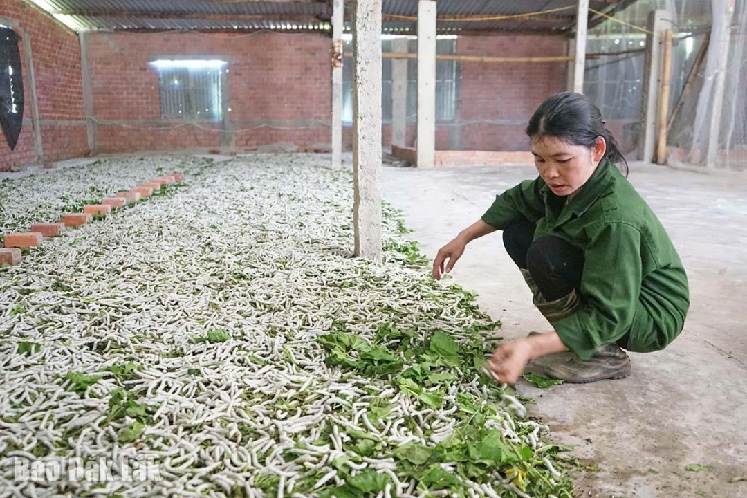 Gia đình chị Bùi Thị Hiền, ở buôn Cao Bằng cũng đã quyết định thay thế 6 sào cà phê già cỗi sang trồng dâu tằm hơn một năm nay. Dù là mô hình hoàn toàn mới mẻ nhưng chỉ sau một thời gian ngắn triển khai, chị Hiền đã nhận thấy rõ rệt sự khác biệt: năng suất và hiệu quả kinh tế đạt được cao hơn hẳn so với các loại cây trồng truyền thống khác. Theo chị Hiền, những năm gần đây, thị trường kén tằm rất sôi động, nhu cầu cao nên gia đình chị có chừng nào kén là bán ra thị trường chừng đó, không phải lo lắng về đầu ra.