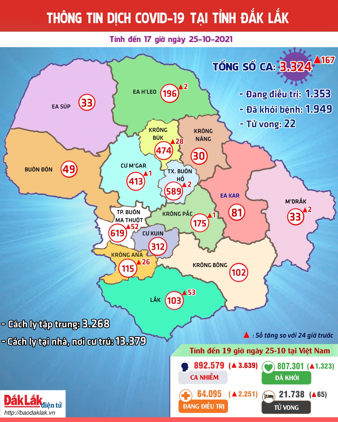 Thông tin dịch COVID-19 tại tỉnh Đắk Lắk ngày 25-10-2021