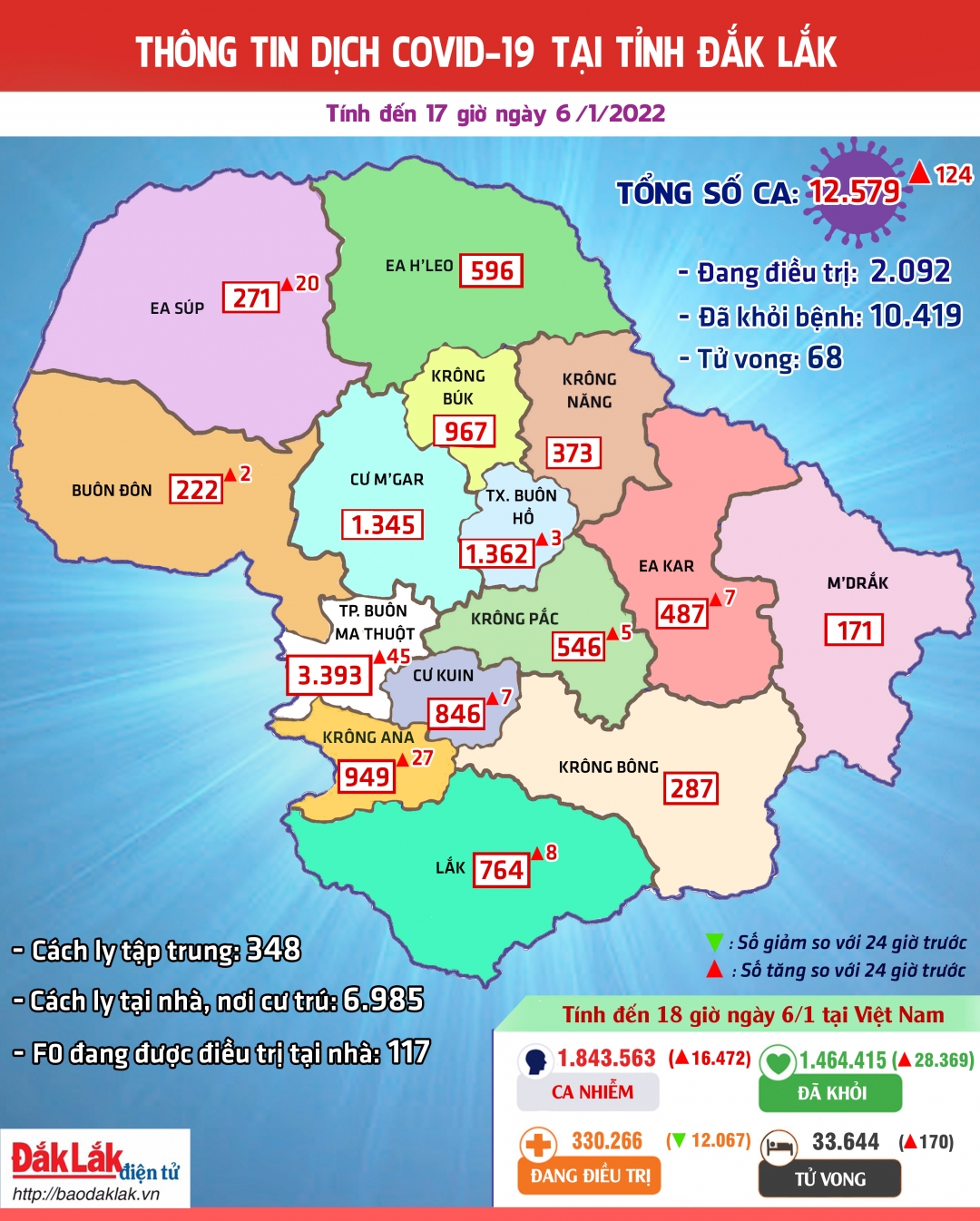 Thông tin dịch COVID-19 tại tỉnh Đắk Lắk ngày 13/1/2022