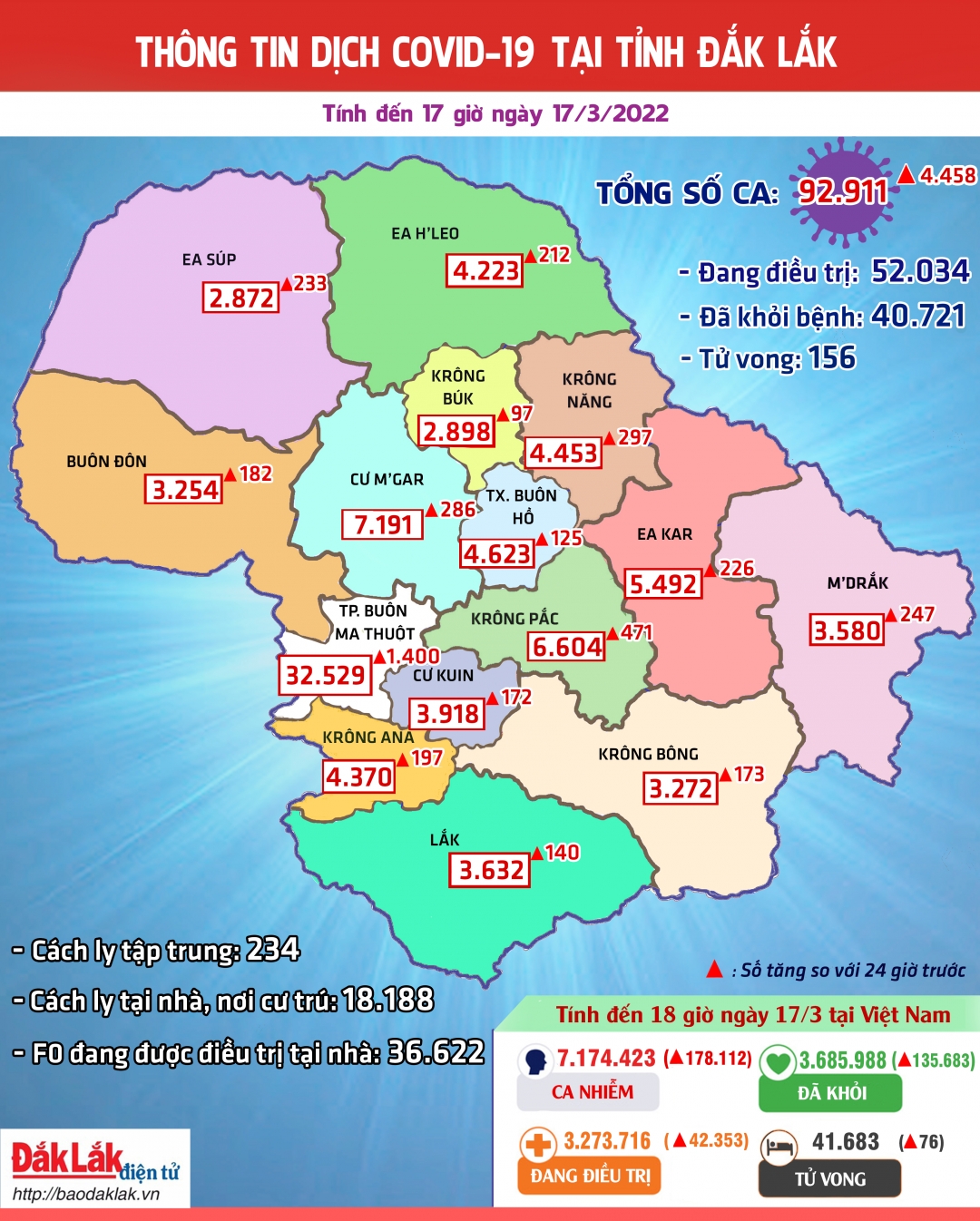Thông tin dịch COVID-19 tại tỉnh Đắk Lắk ngày 23/3/2022