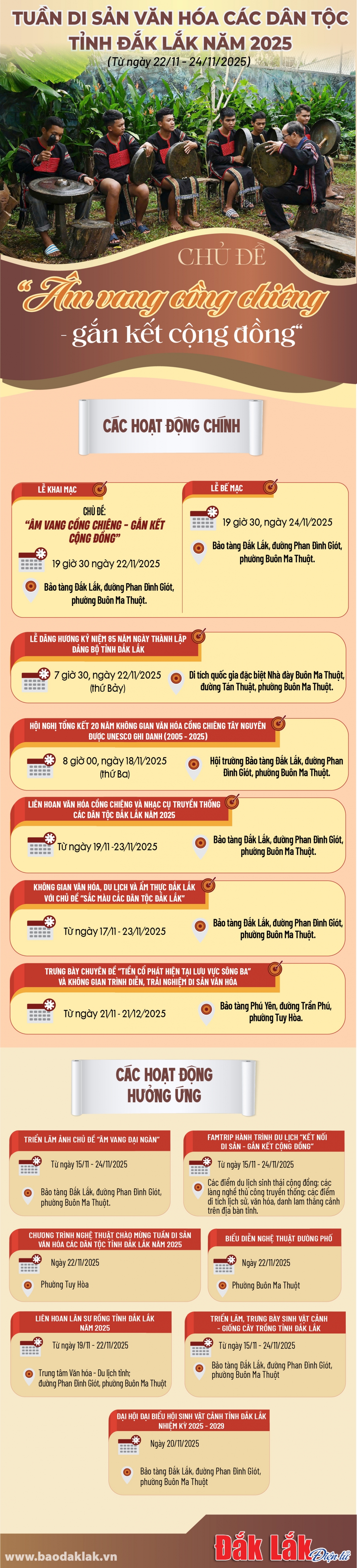 (Infographic) "Tuần Di sản văn hóa các dân tộc tỉnh Đắk Lắk năm 2025" sẽ diễn ra từ 22/11 - 24/11