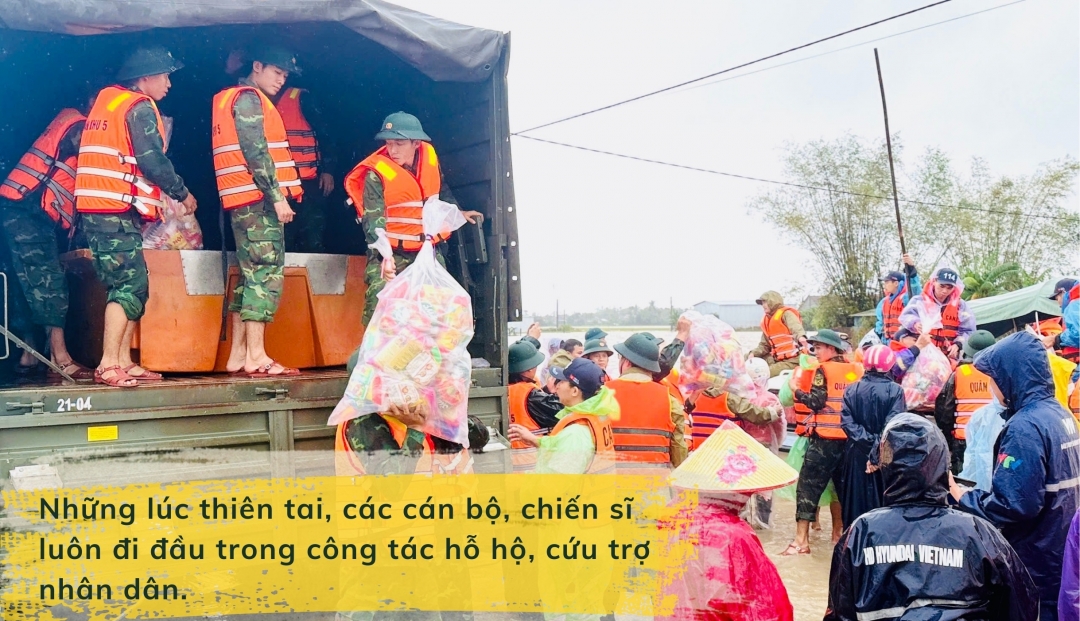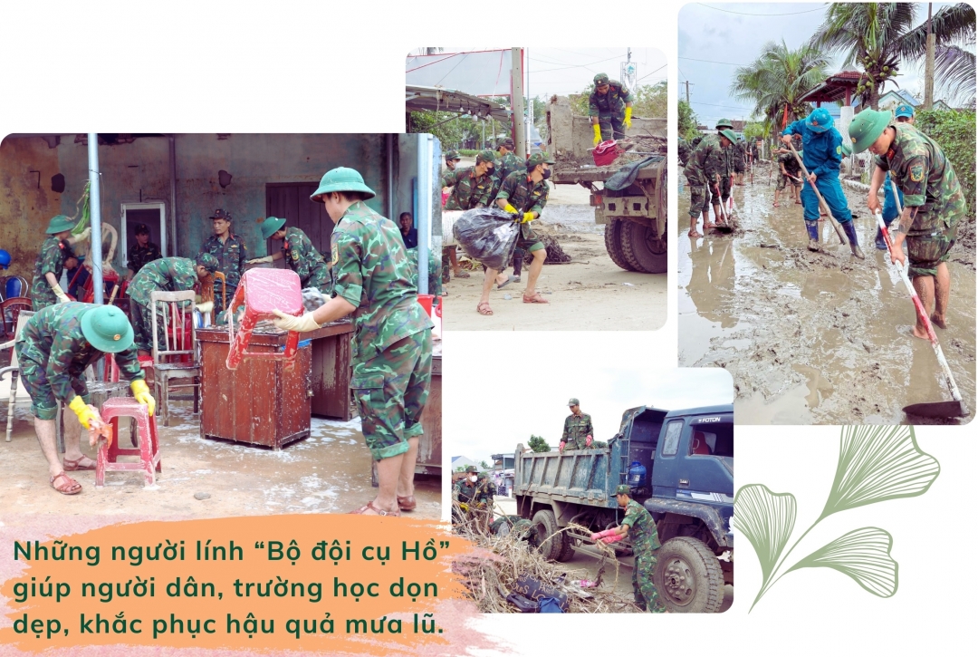 Tại xã Hòa Mỹ, hàng trăm cán bộ, chiến sĩ Trung đoàn 584 hối hả thu dọn bùn đất, vét rác, kê lại bàn ghế, quét dọn từng ngôi nhà, từng lớp học. Ở Nhà văn hóa thôn Lạc Chỉ, trước cảnh bùn đất ngổn ngang, bộ đội và người dân cùng nhau khiêng đồ đạc, lau dọn phòng ốc, chỉnh trang cảnh quan, khôi phục không gian sinh hoạt chung cho cộng đồng.
