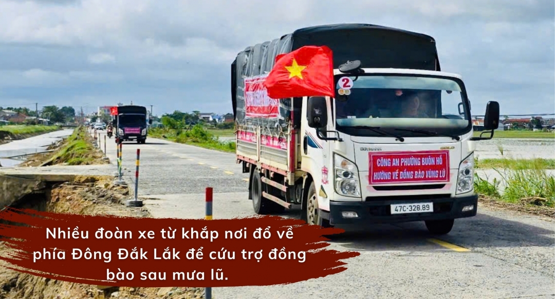 Trong bối cảnh mưa lũ gây thiệt hại nặng nề, cuốn trôi tài sản và chia cắt nhiều khu vực phía Đông Đắk Lắk, tình đồng bào lại càng được thể hiện rõ nét và ấm áp. Từng đoàn thiện nguyện từ phía Tây Đắk Lắk đã vượt qua những cung đường lầy lội, sạt lở để mang lương thực, nước uống, áo ấm đến tận tay bà con phía Đông.