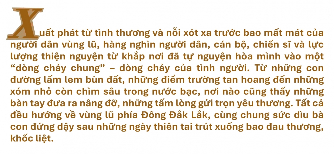 Hơn tất cả, vùng đất Đắk Lắk - với truyền thống nghĩa tình, kiên cường - luôn biết cách biến đau thương thành động lực, biến gian khó thành sự gắn kết. Và khi cả cộng đồng cùng chung tay, khi trái tim người với người được đặt cạnh nhau, thì không có dòng nước lũ nào có thể quật ngã được sức sống của con người nơi đây. Lũ đã rút đi, nhưng tình người thì còn ở lại - đủ để dựng lên niềm tin mới, cuộc sống mới, bình yên mới cho những ngày phía trước.