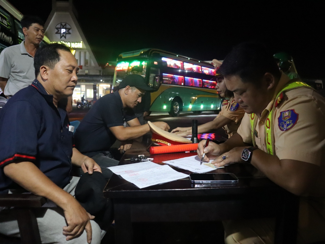 | Cán bộ Đội Cảnh sát giao thông - Trật tự, Công an huyện Krông Ana lập biên bản đối với Đ.V.T. |