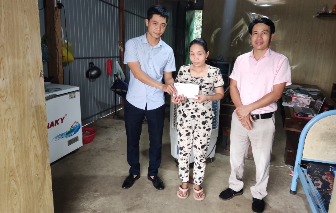 | Cán bộ Công an huyện Krông Ana và Công an xã Dur Kmăl đến thăm hỏi, động viên gia đình chị H Lan Bdap có con bị tử vong do tai nạn giao thông. Ảnh: Hoàng Hồng |
