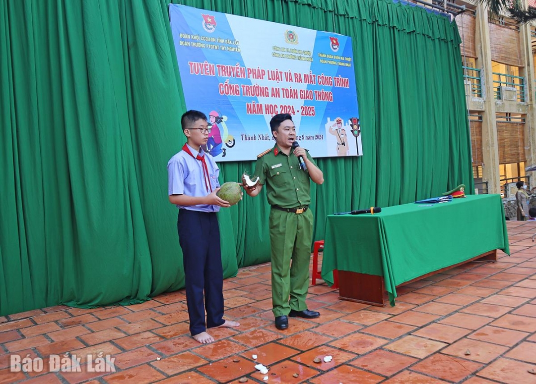 Đơn cử, cuối tháng 9 vừa qua, nhằm hưởng ứng Tháng cao điểm an toàn giao thông cho học sinh đến trường năm 2024, Công an TP. Buôn Ma Thuột phối hợp với Trung tâm Đào tạo lái xe Việt Nhật (đóng trên địa bàn xã Hòa Thắng, TP. Buôn Ma Thuột ) và các đơn vị liên quan tổ chức buổi tuyên truyền và hướng dẫn kỹ năng tham gia giao thông an toàn cho hơn 200 học sinh Trường THCS Nguyễn Chí Thanh. Ngoài việc tuyên truyền các quy định chung, cán bộ tuyên truyền còn đưa ra các tình huống nguy hiểm thường gặp khi tham gia giao thông, qua đó hướng dẫn học sinh cách phòng tránh và kỹ năng tham gia giao thông an toàn.