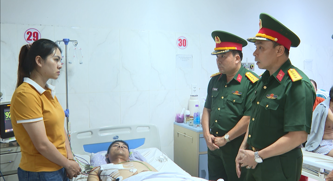 | Thượng tá Trần Bình Hưng, Phó Giám đốc Công an tỉnh động viên, chia sẻ mất mát lớn lao với gia đình thân nhân liệt sỹ. |
