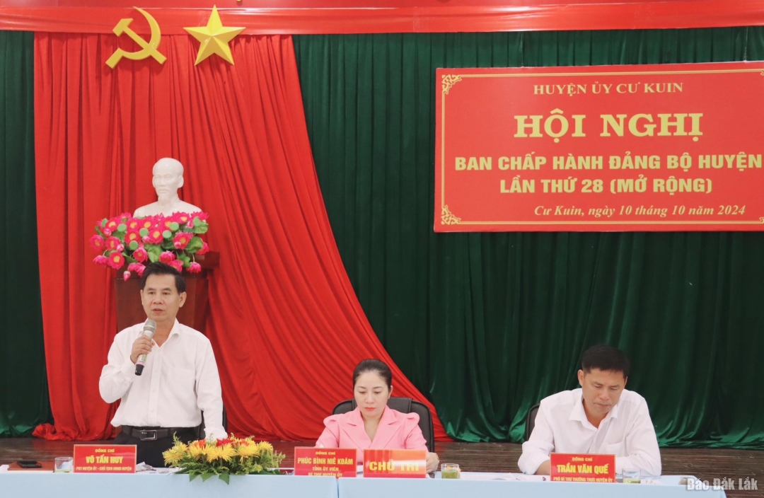 | Phó Chủ tịch Thường trực UBND huyện Ea H'leo Phạm Văn Khôi phát biểu tại hội nghị. |