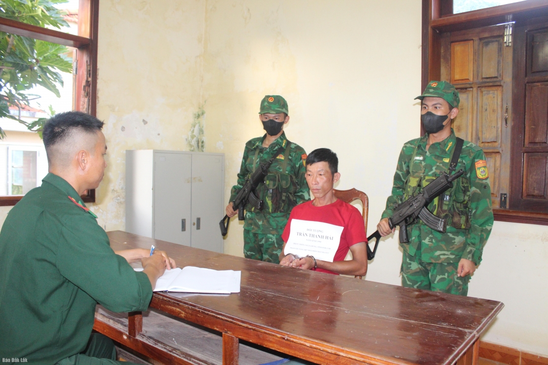 | Bí thư Đảng ủy, Chủ tịch HĐND phường Phú Yên Trần Xuân Túc gắn Huy hiệu 60 năm tuổi Đảng cho đảng viên Huỳnh Lữ Sinh. |
