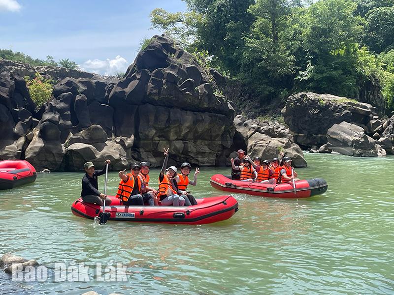 | Bộ đội biên phòng giao lưu văn hóa văn nghệ với người dân xã biên giới Ia R'vê (huyện Ea Súp). |