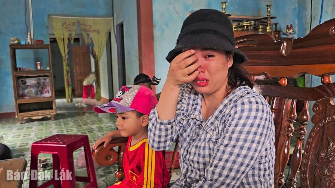 | Chị Nguyễn Thị Hồng Xuyên (thôn Phú Hữu, xã Hòa Thịnh) xúc động khi nhắc lại giờ khắc ba mẹ con chị được ông Trần Công Thành cứu sống vào ngày 20/11 vừa qua. Ảnh: Lê Hảo |