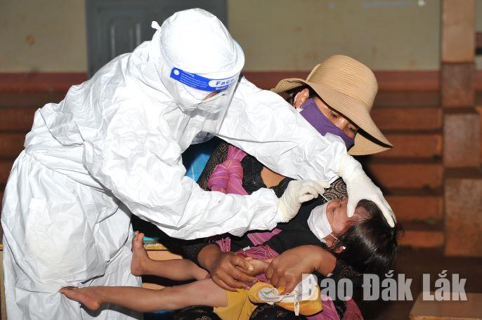 | Chủ tịch UBND huyện Cư Kuin Võ Tấn Huy (đứng giữa) kiểm tra công tác phòng, chống dịch COVID-19 tại xã Hòa Hiệp. (Ảnh minh họa) |