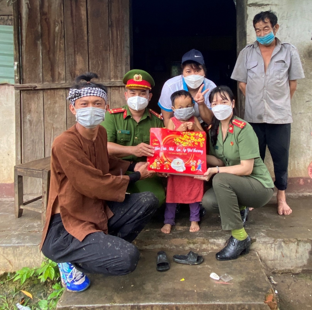 | Lực lượng Công an trực chốt kiểm dịch xã Pơng Drang xử lý trường hợp vi phạm Chỉ thị 16. |