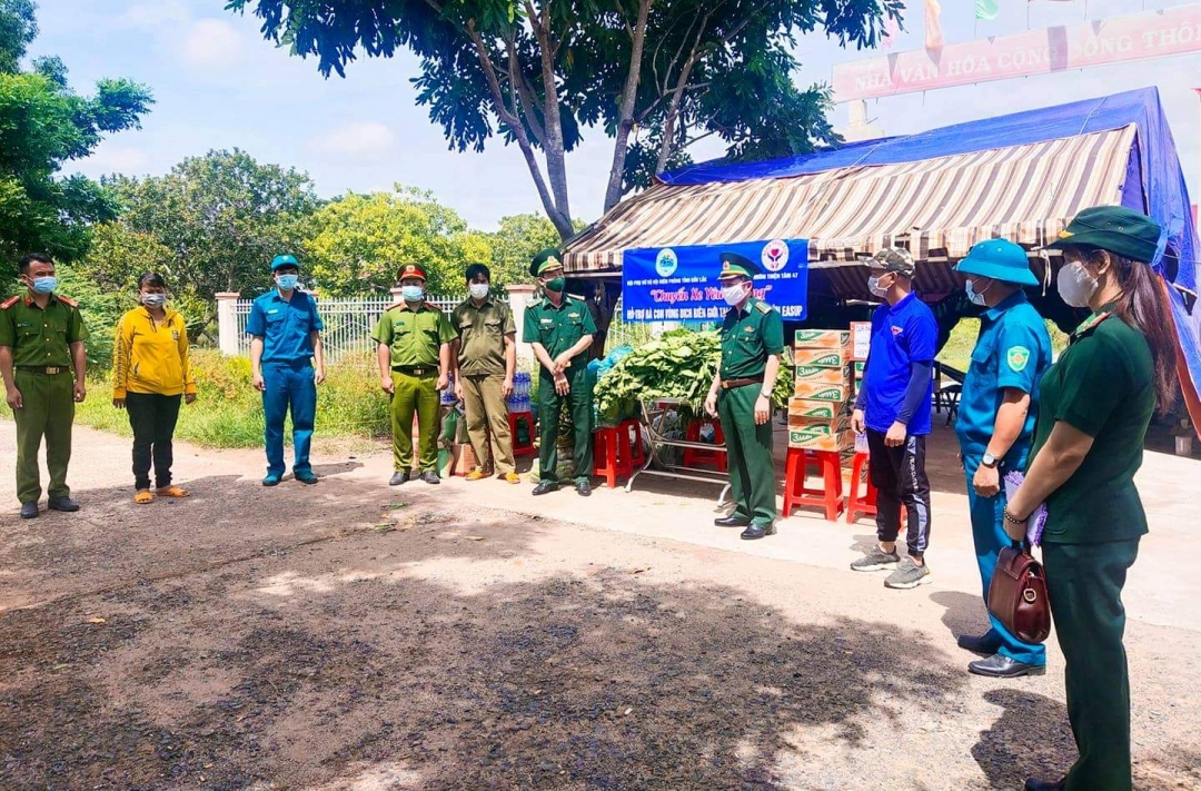 | Đoàn viên, thanh niên huyện Buôn Đôn hỗ trợ thực phẩm cho người dân trong khu vực cách ly. |