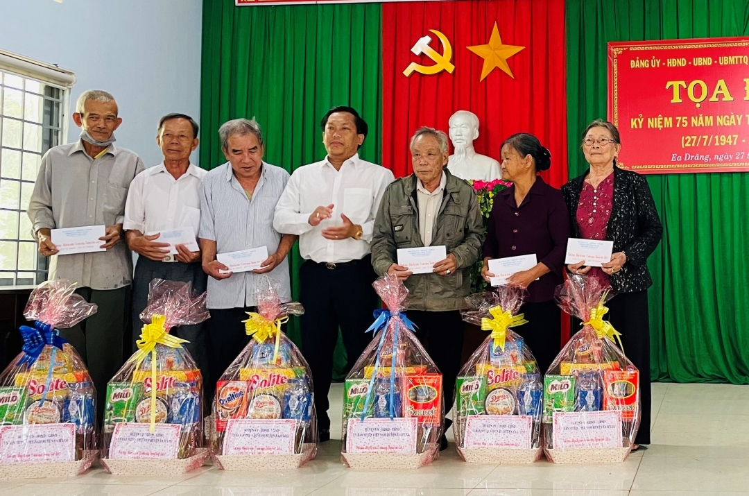 Nhân kỷ niệm 75 năm Ngày Thương binh - Liệt sĩ (27/7/1947 – 27/7/2022), ngày 27/7, đại diện lãnh đạo Đảng bộ, chính quyền, MTTQ Việt Nam huyện Lắk đã tổ chức 11 Đoàn công tác đến thăm hỏi, tặng quà các gia đình chính sách, người có công tiêu biểu tại các xã, thị trấn trên địa bàn huyện.