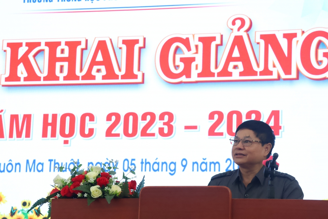 | Phó Chủ tịch UBND tỉnh H'Yim K'đor phát biểu tại lễ khai giảng. |