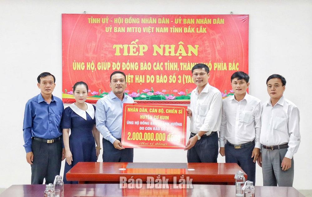 | Phó Chủ tịch UBND tỉnh H’Yim Kđoh (thứ 5 từ phải qua) cùng trao quà hỗ trợ các gia đình khó khăn trong ngày ghi hình 22/9. |