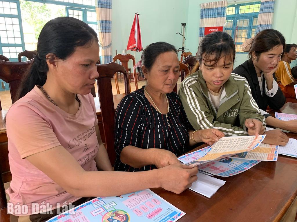 | Phụ nữ xã Ea Uy (huyện Krông Pắc) tìm hiểu về kiến thức pháp luật. |