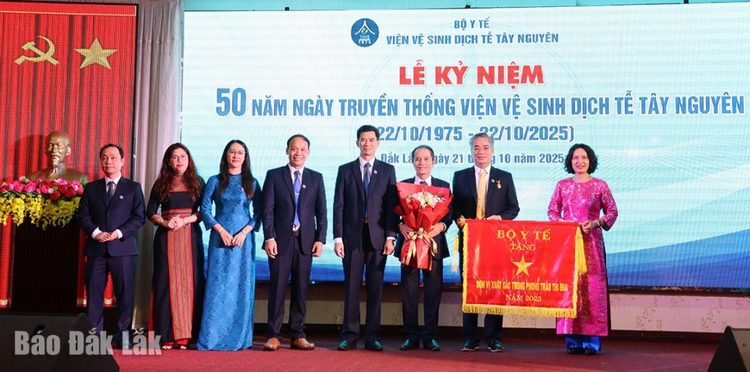 | Viện Vệ sinh dịch tễ Tây Nguyên nhận Cờ thi đua do Bộ Y tế trao tặng. |