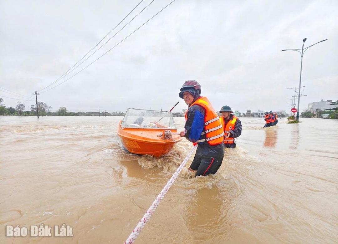 | Anh Đào Đặng Công Trung tham gia cứu nạn người dân các vùng ngập sâu ở phía Đông Đắk Lắk. Ảnh: H. My |