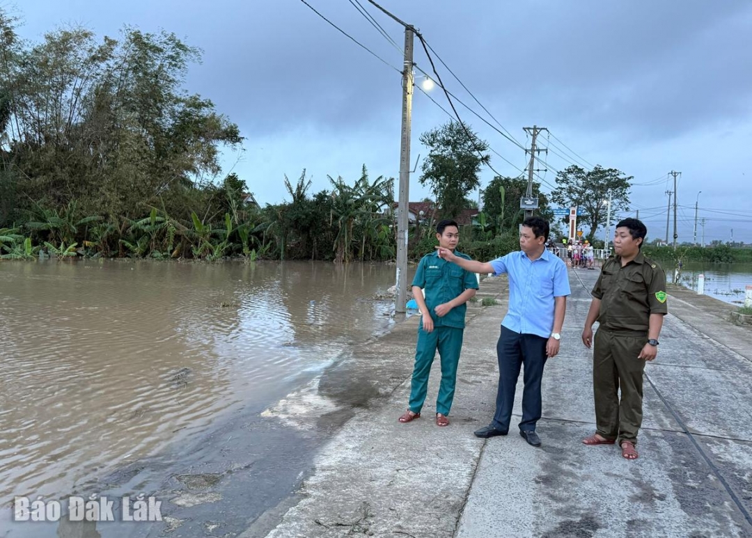 | Phó Bí thư Thường trực Đảng ủy xã Ea Knuếc Y Thưa Kbuôr trao kinh phí hỗ trợ xây dựng nhà ở cho cô H'Rim Ayun, giáo viên Trường Mầm non Hoa Huệ. |